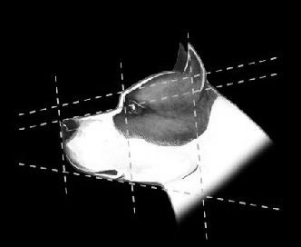 Di media lunghezza, profonda, cranio largo, masseteri molto pronunciati, stop evidente, orecchie piazzate alte.
